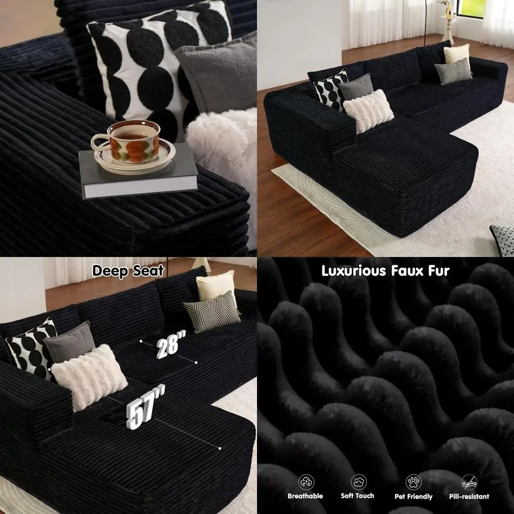 This 104″ cloud‑style modular sectional sofa brings unmatched comfort and modern elegance to any living room, bedroom, or office. Designed with extra‑deep seating, it offers a plush, sink‑in feel that makes lounging irresistible. The L‑shaped chaise provides flexible relaxation space, perfect for stretching out, reading, or unwinding after a long day. Its modular structure allows you to rearrange the pieces to fit your layout, giving you the freedom to create the perfect seating arrangement for your home.