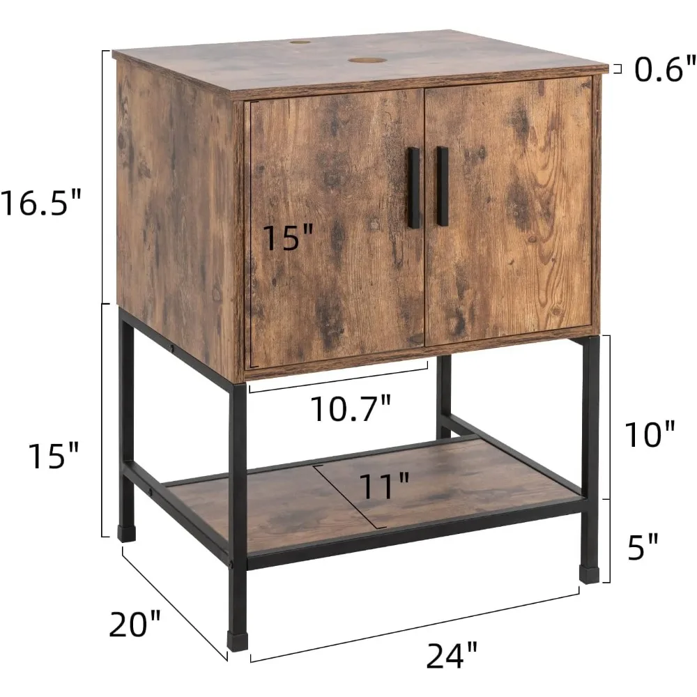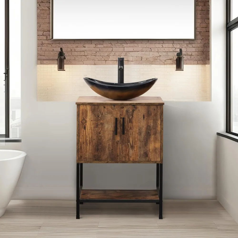This 24-inch rustic brown bathroom vanity blends industrial charm with modern functionality, making it a standout piece for compact bathrooms. The rich wood‑tone finish pairs beautifully with the sturdy iron frame, creating a balanced mix of warmth and strength. Its integrated sink offers a clean, easy‑to‑maintain surface ideal for everyday use. The cabinet features soft-close doors and a lower open shelf, giving you both concealed storage and a stylish display area for towels or décor. Modern champagne‑tone accents elevate the design with a subtle touch of luxury. Built for durability, this vanity withstands daily moisture while maintaining its rustic character. Perfect for farmhouse, industrial, or contemporary interiors, it brings texture, practicality, and visual appeal to any bathroom.