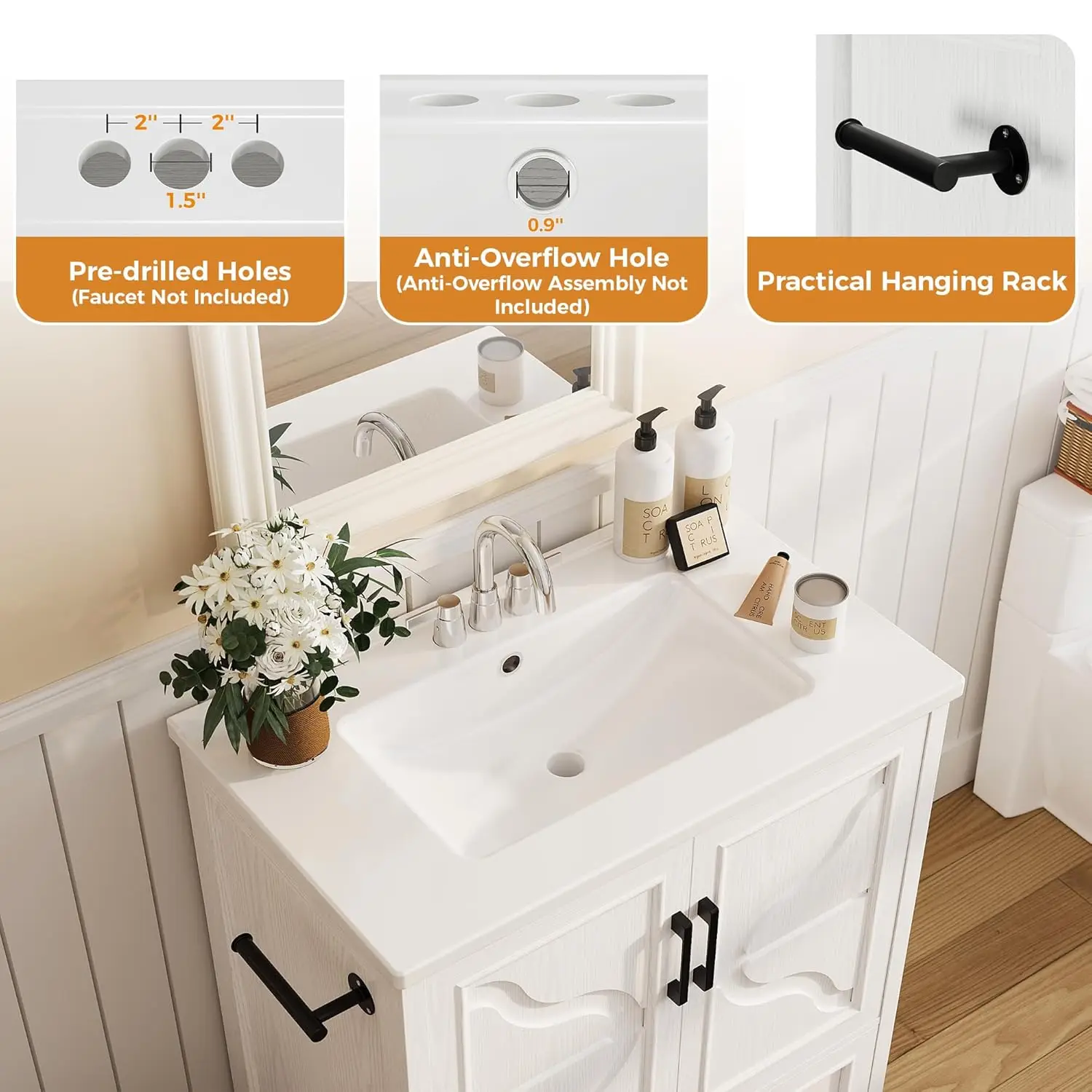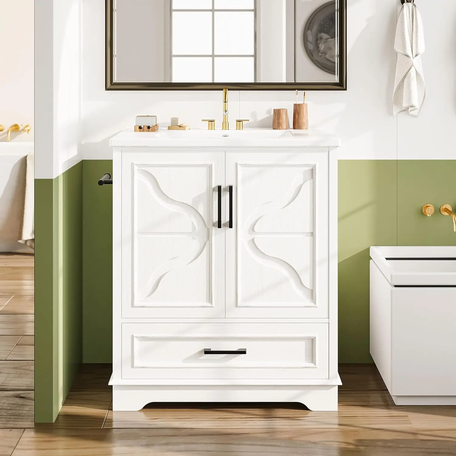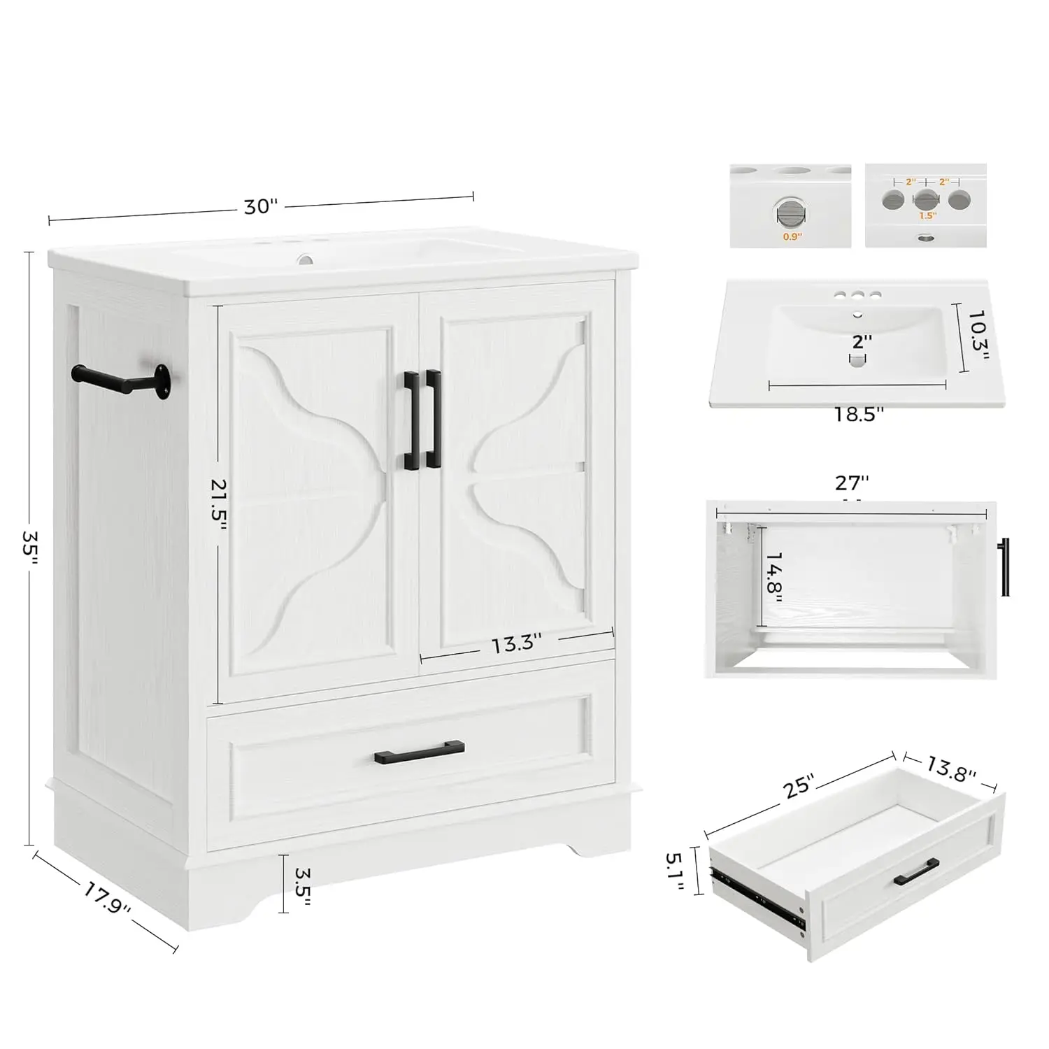 This 30″ Modern Bathroom Vanity offers a perfect balance of compact design, practical storage, and contemporary style. Featuring a high‑quality ceramic basin, it provides a smooth, durable, and easy‑to‑clean surface ideal for everyday use.