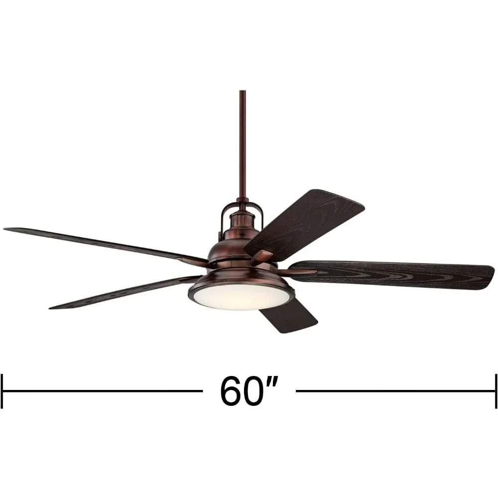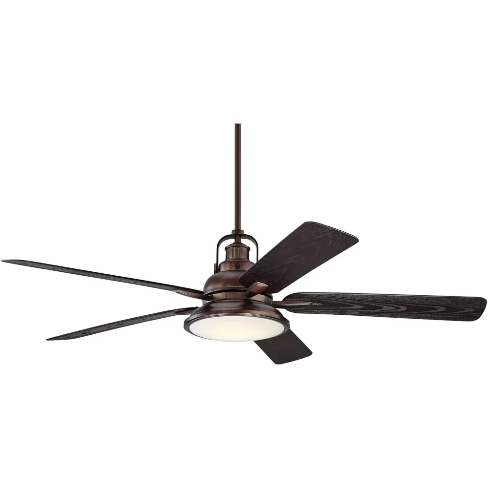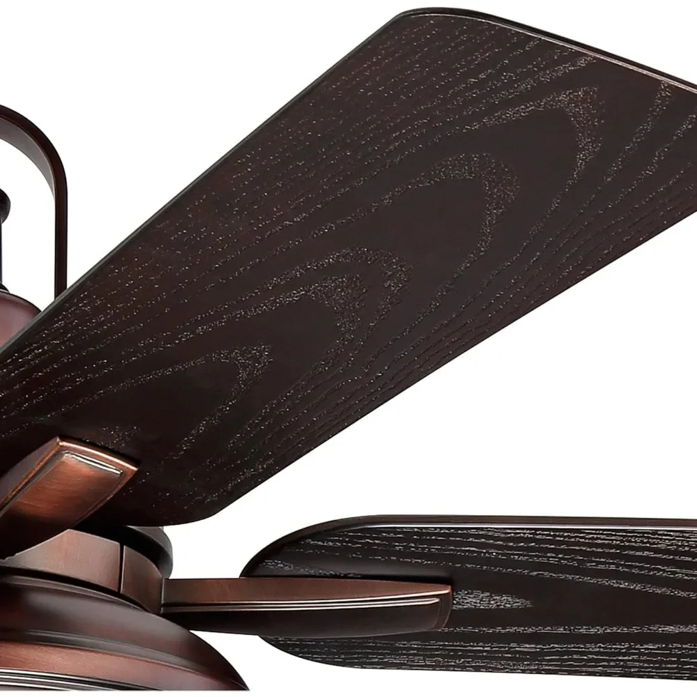This 60-inch industrial-style ceiling fan brings powerful airflow, warm ambiance, and versatile functionality to both indoor and outdoor spaces. Its oil‑brushed bronze finish and brown blades create a rugged yet refined look that complements rustic, farmhouse, and modern industrial décor. The integrated LED light provides bright, energy‑efficient illumination with dimmable settings to match any mood or activity. Designed for convenience, the included remote control allows effortless adjustment of fan speeds, lighting levels, and on/off functions. Built for durability, it performs reliably in covered outdoor areas such as patios, porches, and sunrooms. The large blade span ensures excellent air circulation, making it ideal for spacious living rooms, dining areas, and open‑concept layouts. Its quiet motor delivers smooth, comfortable airflow without disrupting conversation or relaxation. This fan is a stylish and practical upgrade for homeowners seeking year‑round comfort and modern industrial charm.