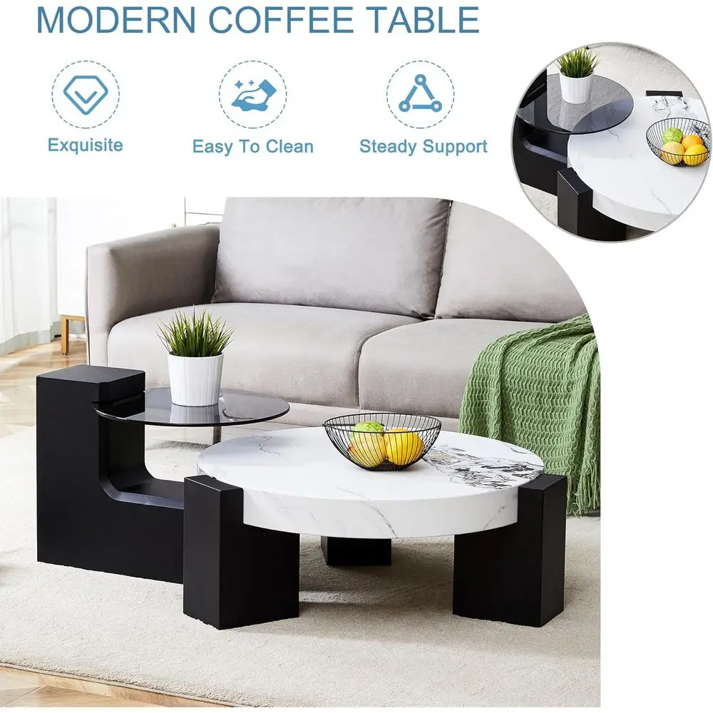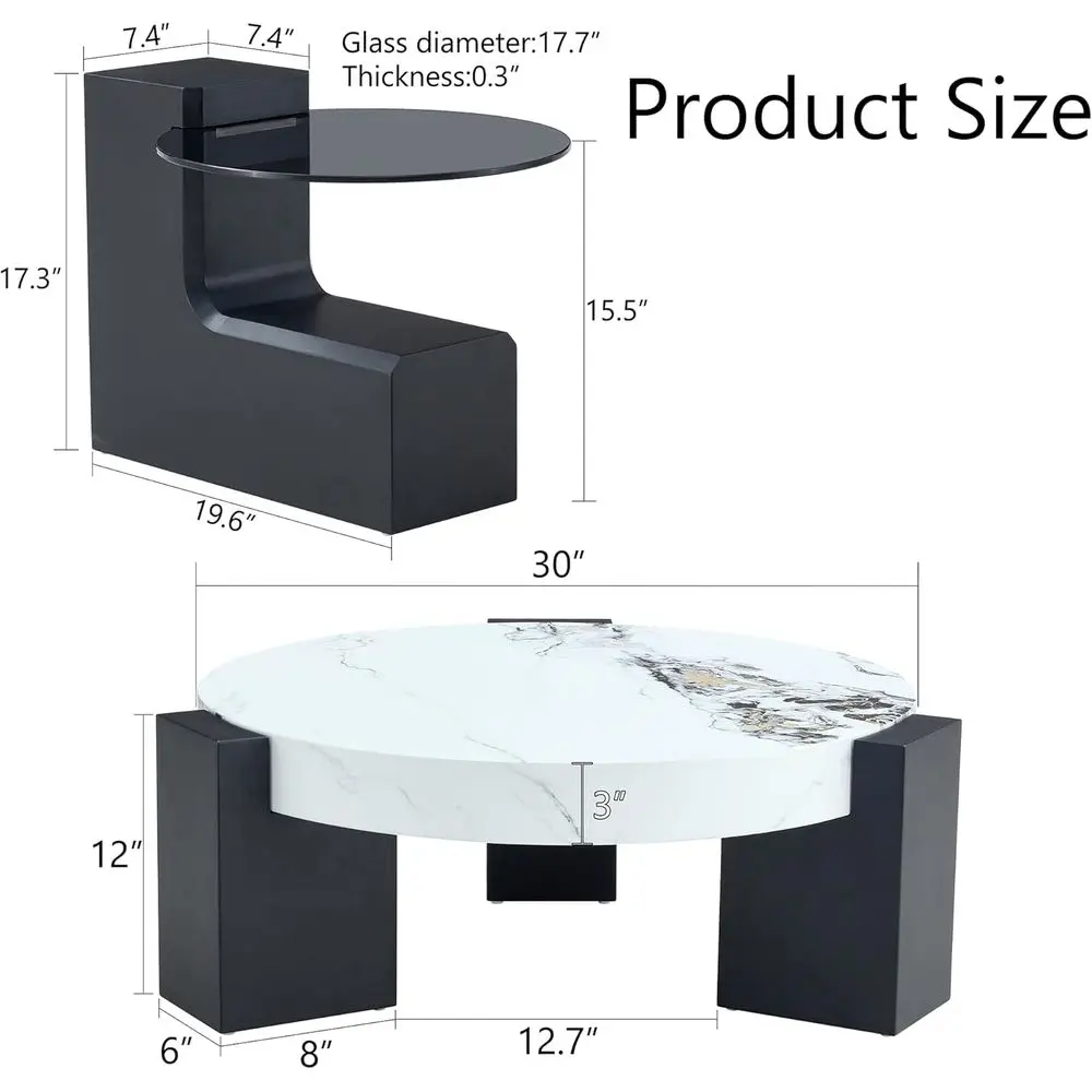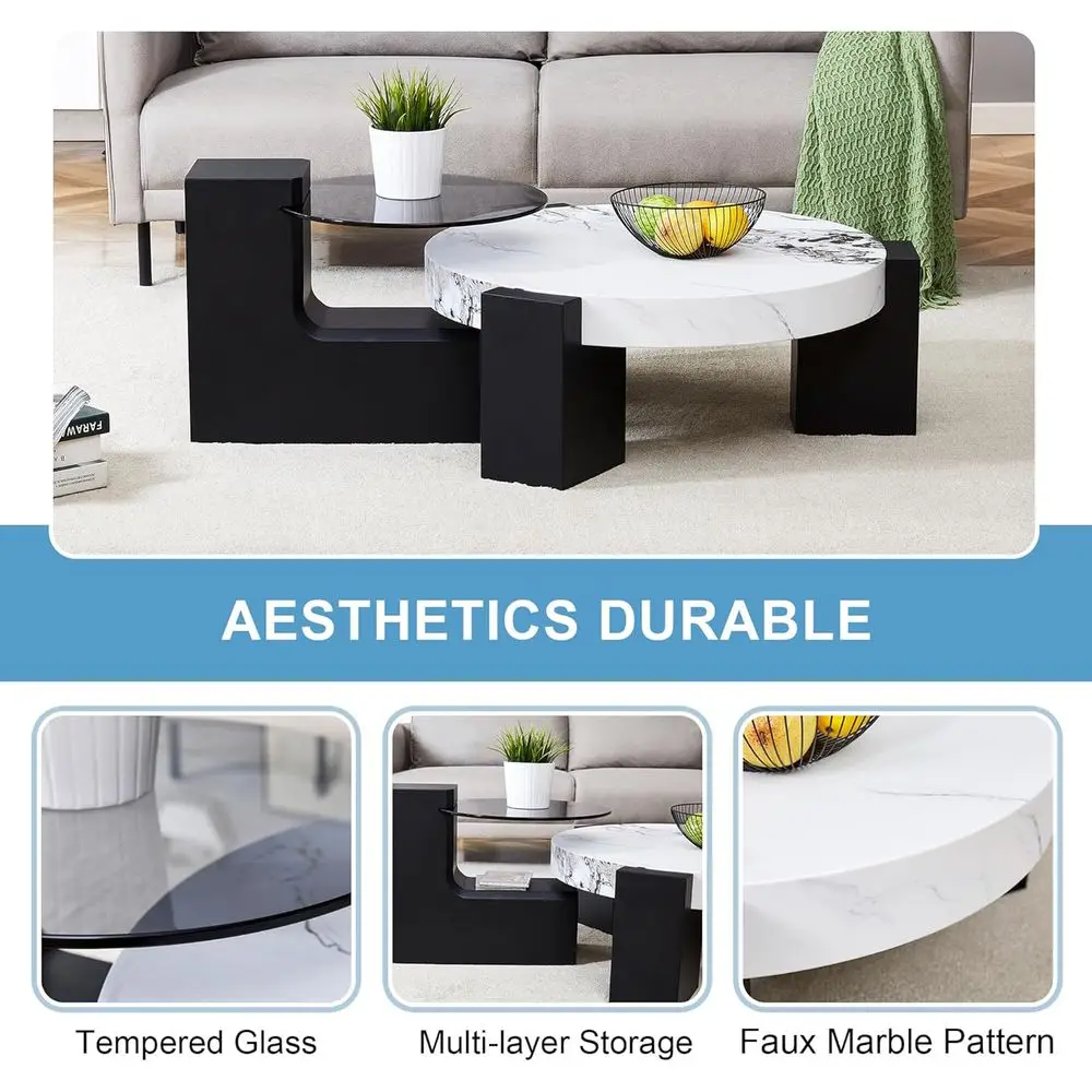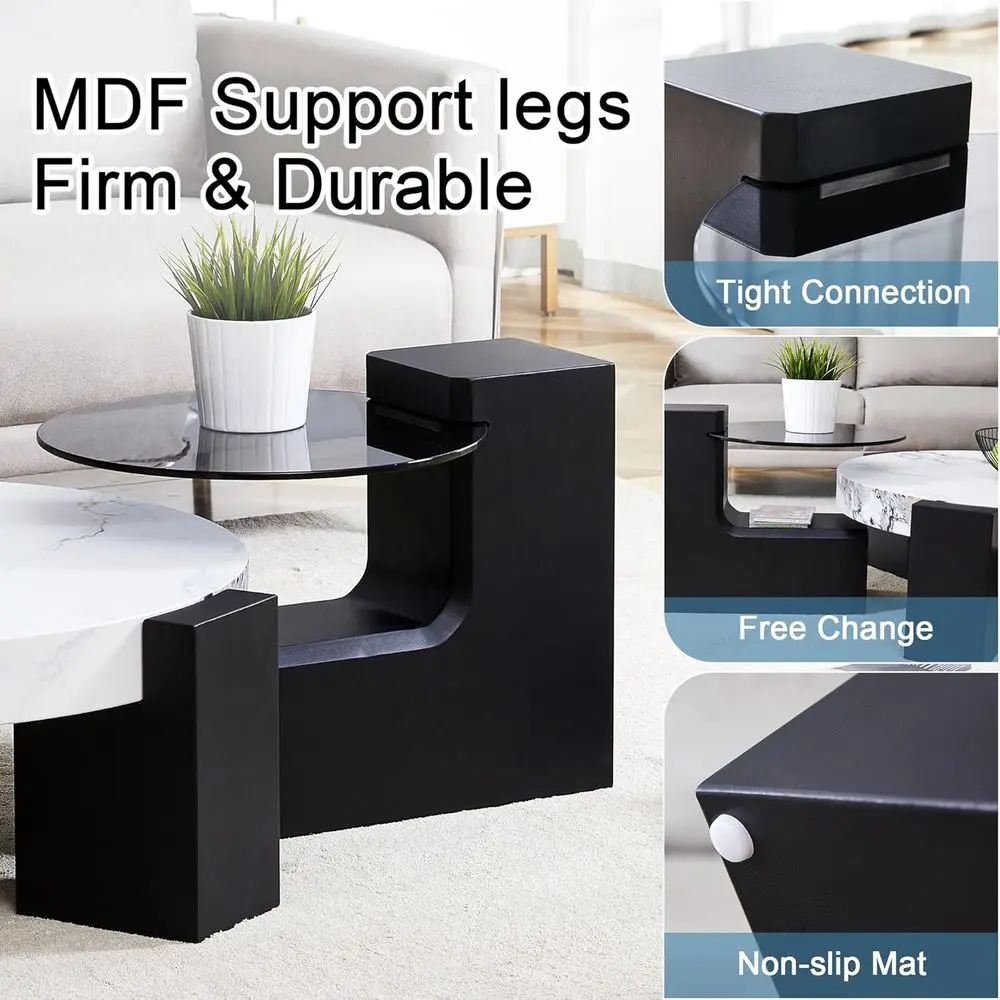 This modern nesting coffee table set brings a sleek, contemporary look to any living space with its striking black‑and‑white faux marble design and elegant glass top. The two‑piece set offers flexible styling options, allowing you to use the tables together for a layered centerpiece or separately as accent pieces. The smooth glass surface adds a touch of sophistication while providing a durable, easy‑to‑clean area for décor, drinks, or everyday essentials. The nesting design makes it perfect for small spaces, offering extra surface area when needed and compact storage when not in use. Its sturdy construction ensures long‑lasting stability, while the contrasting marble patterns create a bold visual statement. Ideal for living rooms, lounges, or modern apartments, this set enhances your décor with both style and practicality. Whether you’re hosting guests or elevating your daily space, these tables deliver a chic, modern finish that stands out beautifully.