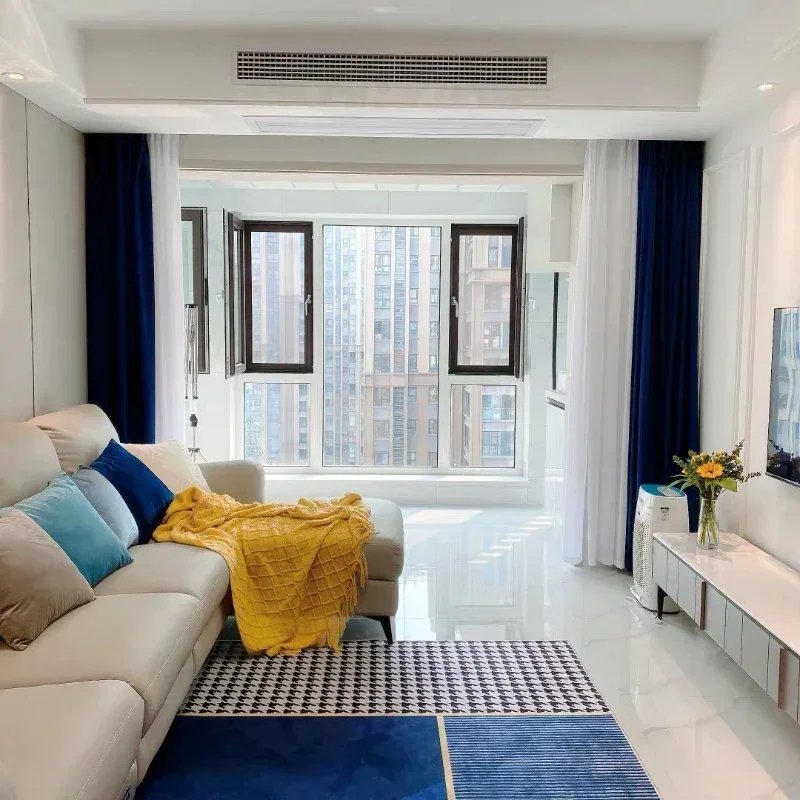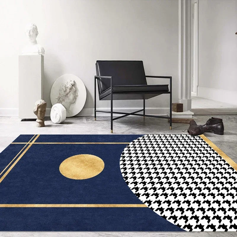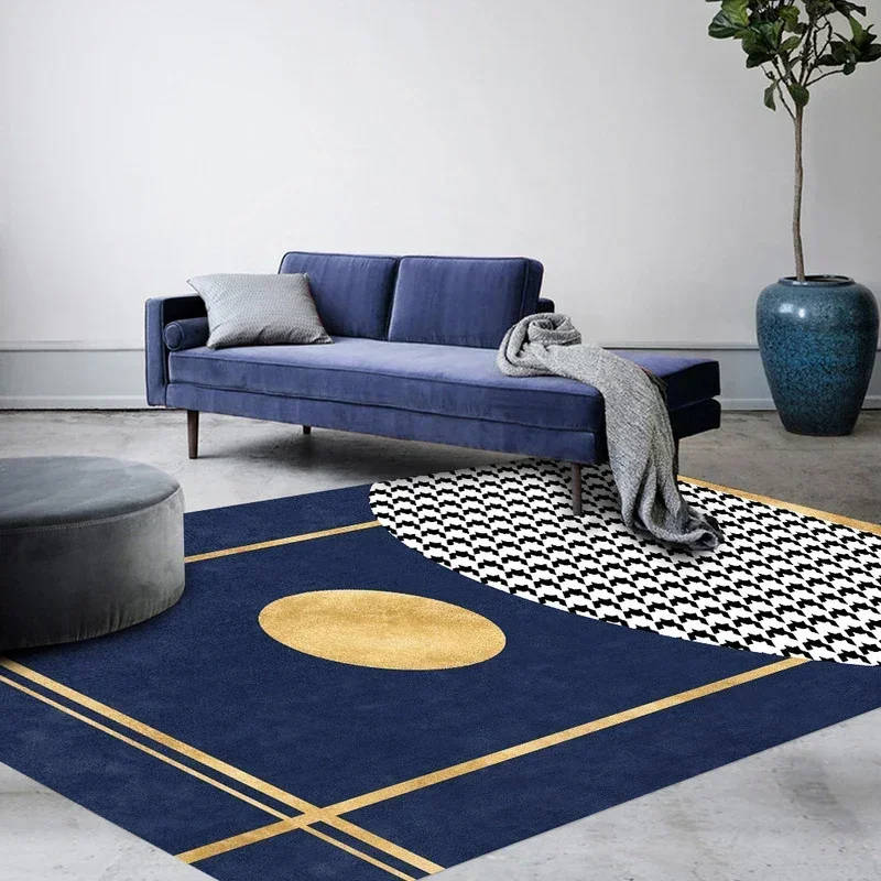 This blue and yellow striped geometric area rug showcases Nordic-inspired elegance with a creative artistic design. Perfect for living rooms, bedrooms, or decorative spaces, it adds a vibrant yet sophisticated touch to your home décor. The soft texture provides comfort underfoot, while the non-slip backing helps keep the rug securely in place for everyday use. Its modern geometric pattern enhances contemporary and Scandinavian-style interiors, making it both a functional floor covering and a stylish decorative accent.