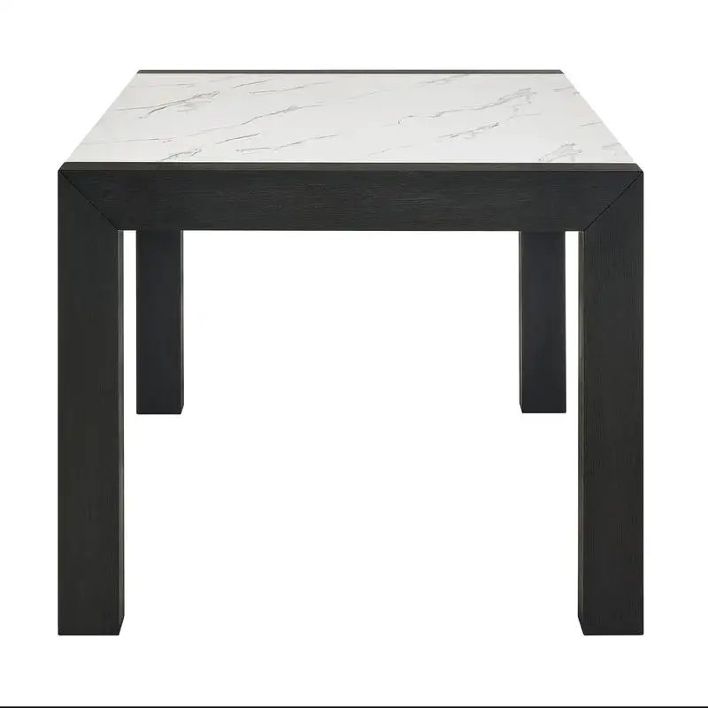 Elevate your dining space with this contemporary 7-piece dining set featuring a sleek white faux marble rectangular table and stylish upholstered chairs. The marble-look tabletop brings a luxurious and modern feel while offering a spacious surface for family meals and entertaining guests. Its durable construction ensures long-lasting use while maintaining a sophisticated appearance. The full-back upholstered chairs provide comfortable seating and support, making long dinners and gatherings more enjoyable. Upholstered in light gray with elegant black accents, the chairs create a striking contrast that enhances the overall design. The clean lines and modern aesthetic make this set a perfect fit for contemporary, minimalist, or upscale interiors. The faux marble surface is easy to clean and maintain, making it practical for everyday dining. Ideal for dining rooms, kitchens, or open-concept living areas, this set creates a refined focal point in your home. Combining comfort, durability, and elegant design, this dining set is perfect for both daily meals and special occasions.