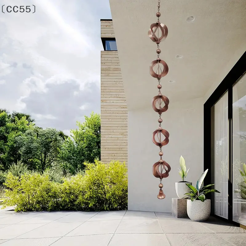 This decorative iron rain gutter chain is designed as a functional and stylish replacement for traditional downspouts. It guides rainwater smoothly from the gutter to the ground, helping manage drainage while creating a soothing visual water flow. Ideal for gardens, patios, and outdoor spaces, it adds an elegant architectural element to your home’s exterior. Made from durable iron for long-lasting outdoor use, this rain chain combines practicality with decorative appeal, enhancing both landscape design and water management.