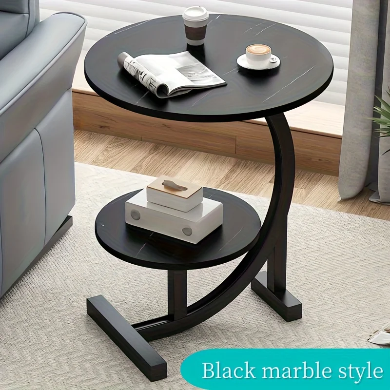 This double‑tier round coffee table blends minimalist luxury with practical everyday function. Its solid wood construction provides lasting durability, while the marble‑patterned top adds a refined, modern touch. The wrought iron base offers exceptional stability and a sleek contrast that elevates any living space. With two tiers, it provides ample room for décor, books, or daily essentials without overwhelming your layout. The smooth, rounded design makes it a perfect fit for living rooms, bedrooms, or cozy seating areas. Its compact footprint works beautifully in both small apartments and spacious homes. The lower shelf adds convenient storage while maintaining a clean, uncluttered look. Whether used as a coffee table, side table, or decorative display stand, it brings a sophisticated, contemporary feel to any room. This piece is ideal for anyone who values both style and functionality in their home décor.