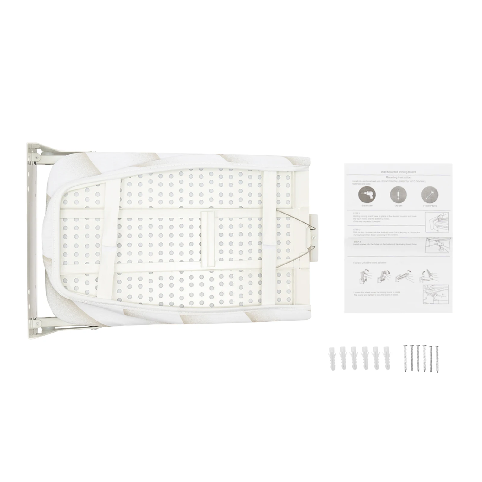 Maximize your space with this foldable wall-mounted ironing board. Made from durable steel and covered with cotton, it provides a sturdy, comfortable surface for pressing clothes at home. The wall-mounted design saves floor space, making it ideal for small apartments, laundry rooms, or homes with limited space. Easy to fold away when not in use, this multifunctional ironing board combines practicality, durability, and convenience for everyday garment care.