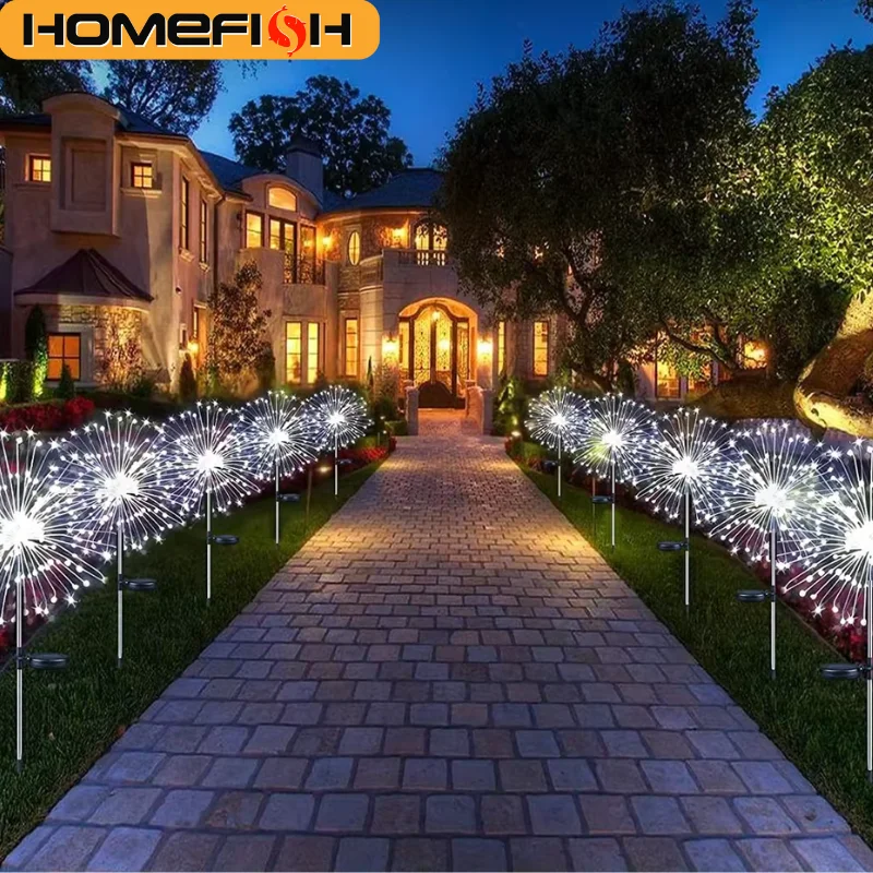 The HOMEFISH 60LED Solar Fireworks Garden Light adds vibrant illumination and festive charm to your outdoor spaces. Featuring 8 dynamic lighting modes, it creates a stunning fireworks effect for gardens, patios, pathways, or yards. Solar-powered and waterproof, it charges during the day and automatically lights up at night, providing eco-friendly and hassle-free operation. The included remote control allows easy selection of lighting modes and brightness settings from a distance. Perfect for decorative and functional outdoor lighting, this LED solar lamp enhances ambiance, safety, and aesthetic appeal. Durable and easy to install, it is ideal for home, parties, or garden decoration year-round.