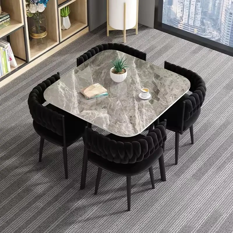 Upgrade your dining space with this light luxury extendable and foldable dining table set, featuring one table and four chairs. Designed for both home and hotel use, the table can convert between round and square shapes to suit your space and needs. The modern minimalist design complements any interior, while the foldable feature allows for easy storage and portability. Perfect for casual dining, entertaining guests, or saving space in compact rooms, this set combines elegance, practicality, and versatility.