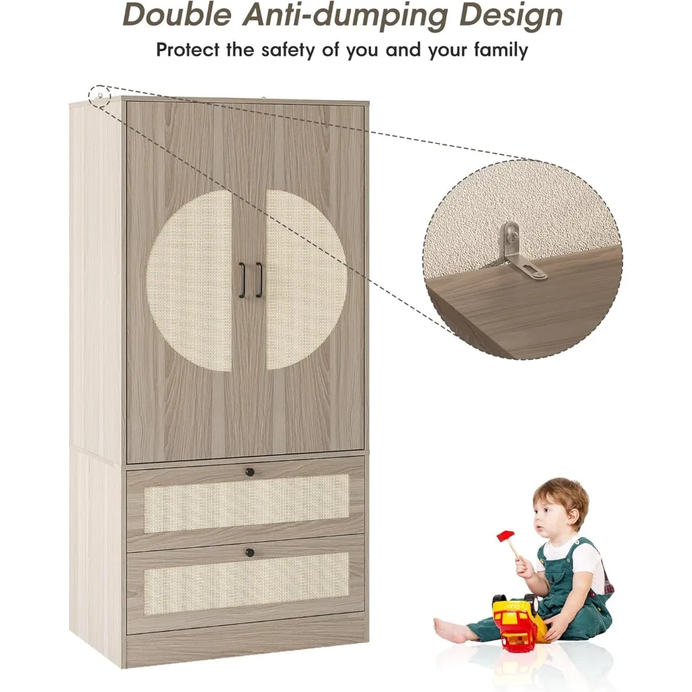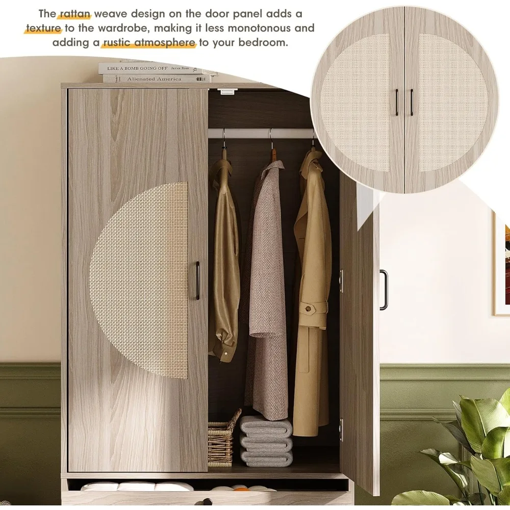 Perfect for modern, boho, Scandinavian, or natural‑inspired interiors, this wardrobe brings texture, warmth, and everyday functionality to your home. Easy to assemble and beautifully designed, it’s a standout piece that elevates any bedroom with effortless style.