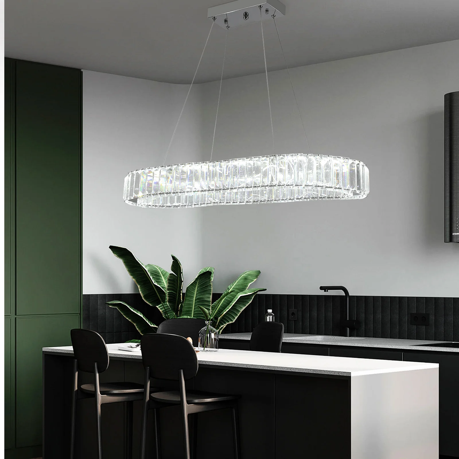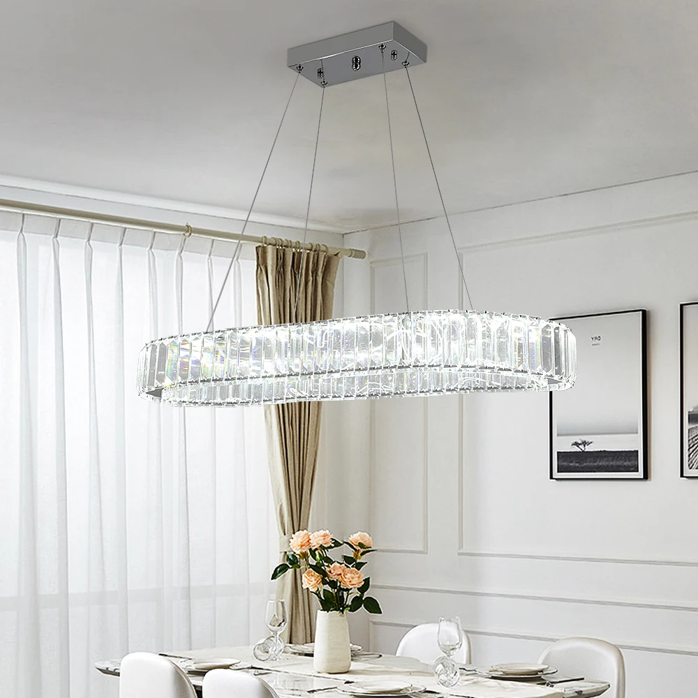 This modern luxury crystal chandelier features a stunning oval design that brings refined elegance and contemporary style to any space. Its sparkling crystal accents beautifully diffuse the LED light, creating a warm, inviting glow that enhances both residential and commercial interiors. The sleek Nordic‑inspired frame adds a minimalist sophistication, making it perfect for living rooms, bedrooms, dining areas, and hotel suites. Designed as a hanging pendant, it offers a graceful floating effect that instantly elevates the room’s ambiance. The integrated LED lighting ensures bright, energy‑efficient illumination with long‑lasting performance. Its balanced blend of luxury and simplicity makes it versatile enough for modern, Scandinavian, and upscale décor themes. Whether used as a statement piece in a grand entryway or as a refined centerpiece above a dining table, this chandelier delivers exceptional style and presence. It’s an ideal choice for anyone seeking a high‑end lighting fixture that combines beauty, function, and timeless design.