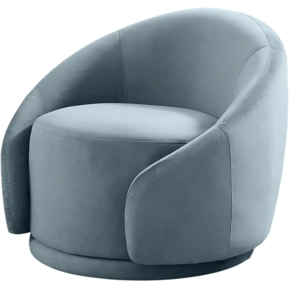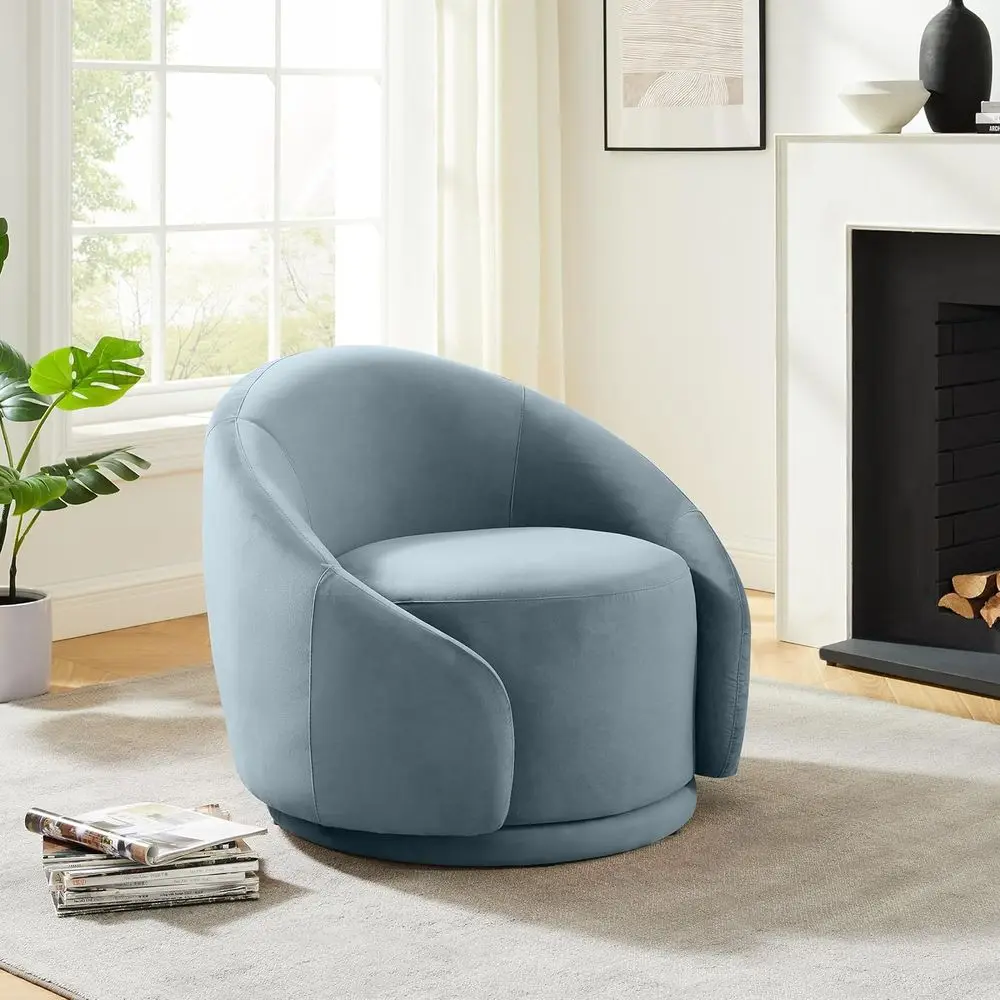 This modern swivel accent chair brings comfort, elegance, and versatility to any living room, bedroom, vanity area, or apartment space. Wrapped in soft velvet upholstery, it offers a luxurious feel while the barrel‑style silhouette creates a cozy, supportive seat you’ll love to sink into. The built‑in armrests add extra comfort, making it perfect for lounging, reading, or getting ready at your vanity.