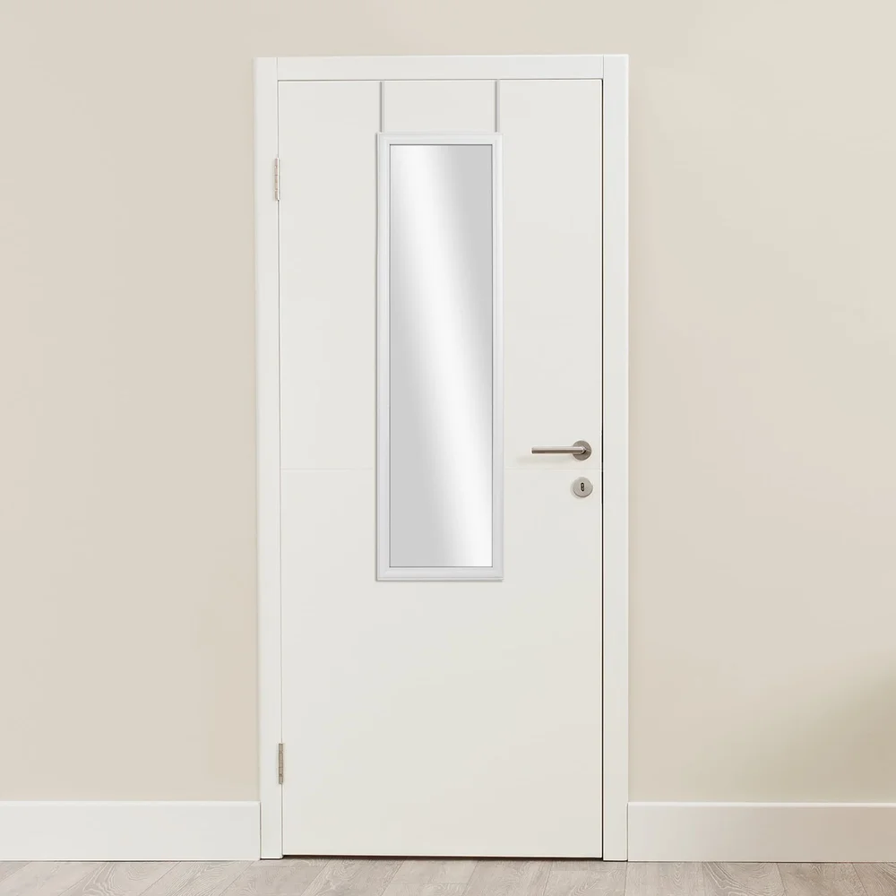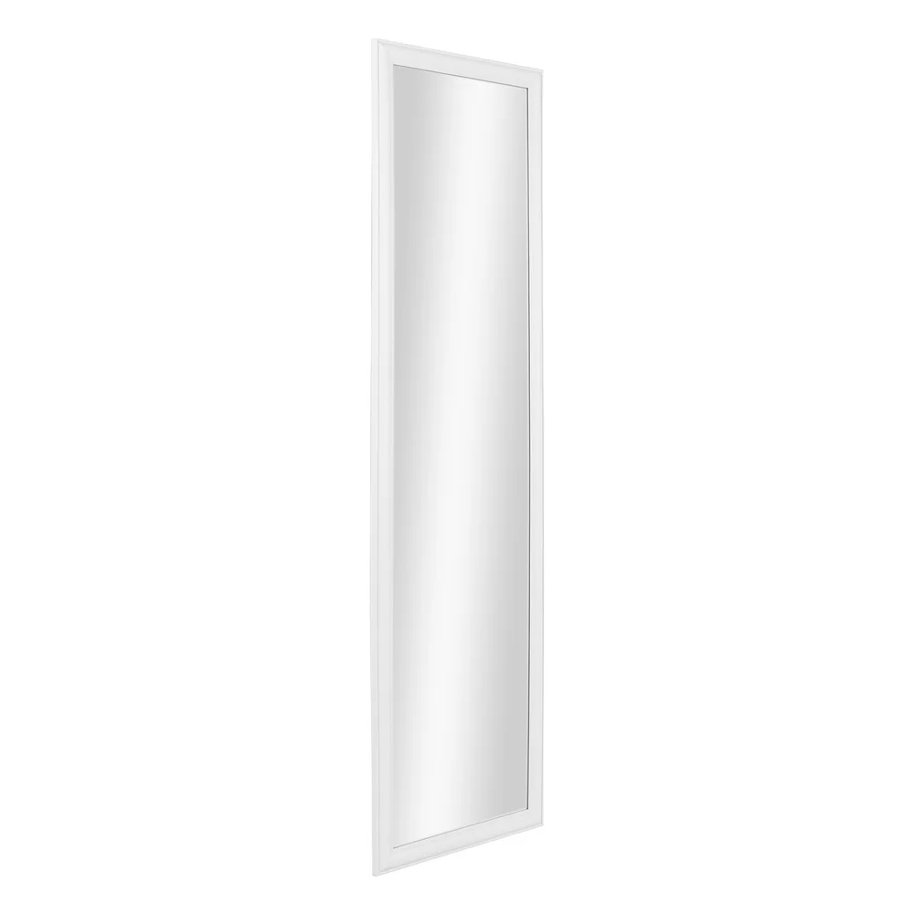 Add style and functionality to your space with this sleek over-the-door rectangular mirror designed for modern living. Measuring 50.25 inches tall, this full-length mirror provides a clear and complete view, making it perfect for checking outfits, grooming, or getting ready for the day. The convenient over-the-door hooks allow for quick and easy installation without the need for drilling or tools, making it ideal for apartments, dorm rooms, and rental spaces. Its slim, space-saving design fits neatly on most standard doors while maximizing visibility in smaller rooms. The clean rectangular shape and modern frame complement a variety of décor styles, from contemporary bedrooms to minimalist entryways. Use it in a bedroom, closet, hallway, or dressing area to add both practicality and elegance. The durable construction ensures long-lasting use while maintaining a lightweight and easy-to-hang design. Whether you’re creating a more functional dressing space or simply adding depth and brightness to your room, this mirror is a stylish and practical home essential.