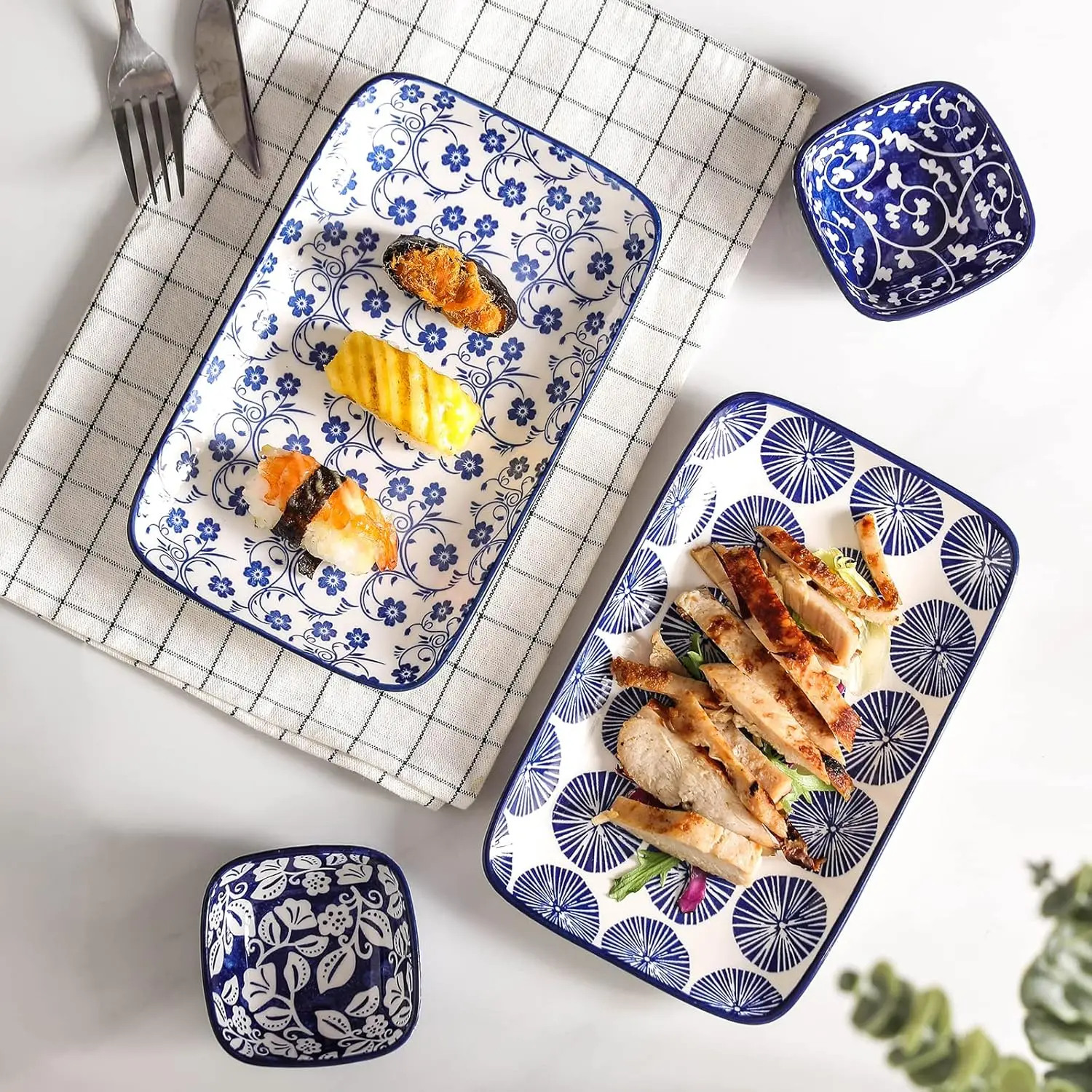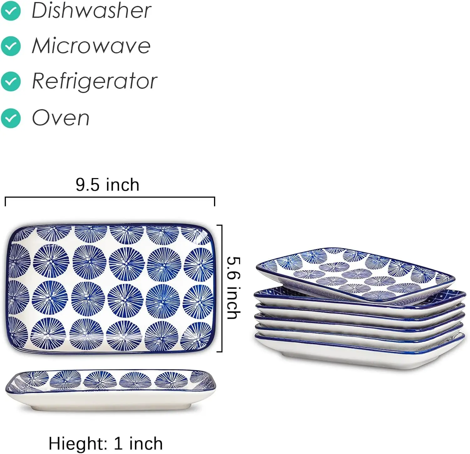 This set of 6 vintage blue 9.5-inch rectangular ceramic plates combines style and versatility for everyday dining or special occasions. Perfect for serving salads, dinners, pasta, desserts, or sushi, the durable ceramic construction ensures long-lasting use. The elegant blue finish adds a touch of sophistication to your table setting, while the rectangular shape offers modern flair. Ideal for home dining, entertaining guests, or gifting, these plates provide a practical yet stylish solution for any meal.
