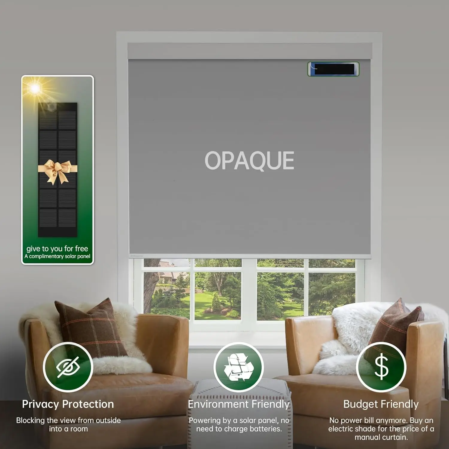 Enhance comfort and convenience with these smart cordless blackout blinds featuring remote control operation and a built-in solar panel for efficient charging. Designed in a sleek gray finish (34×72 inches), they provide excellent light blocking and cooling insulation to help regulate indoor temperatures. The cordless design offers a clean, modern look and added safety for homes with children or pets. Easy to install and operate, these motorized shades combine smart functionality, energy efficiency, and contemporary style for any room.