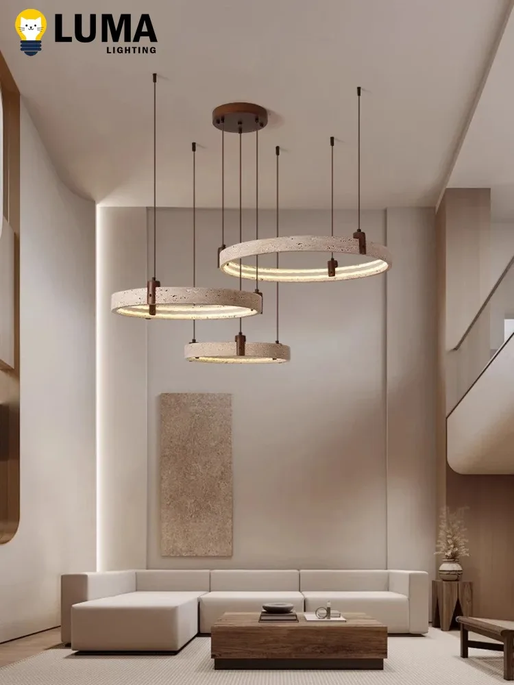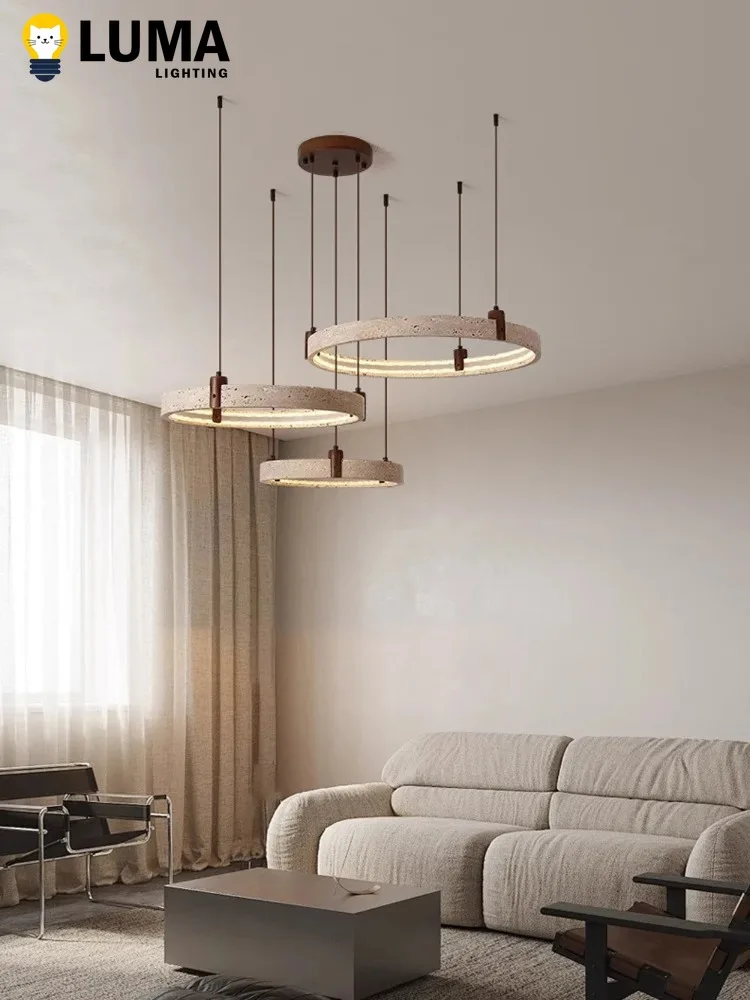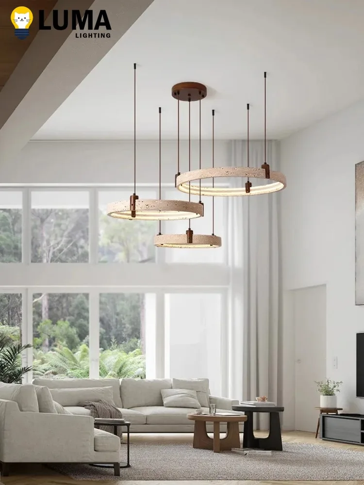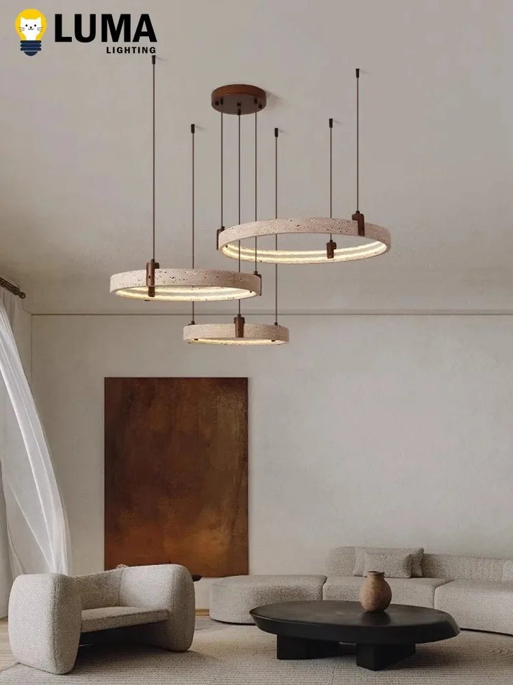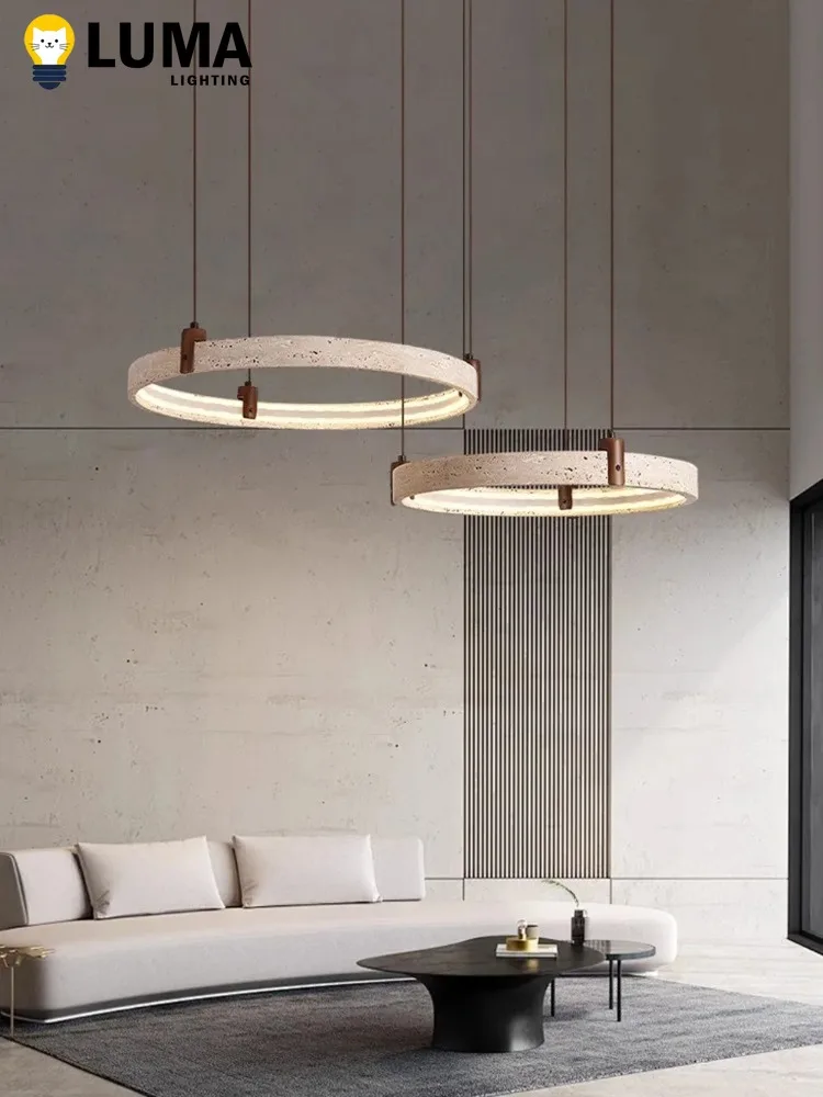 This Wabi‑Sabi Japanese‑style travertine ring chandelier brings a serene, organic beauty to any modern home. Crafted with natural yellow travertine, each ring showcases unique textures and subtle variations that echo the calm imperfection of nature. The cave‑stone aesthetic adds depth and character, creating a warm, sculptural focal point in living rooms, dining areas, or open loft spaces.